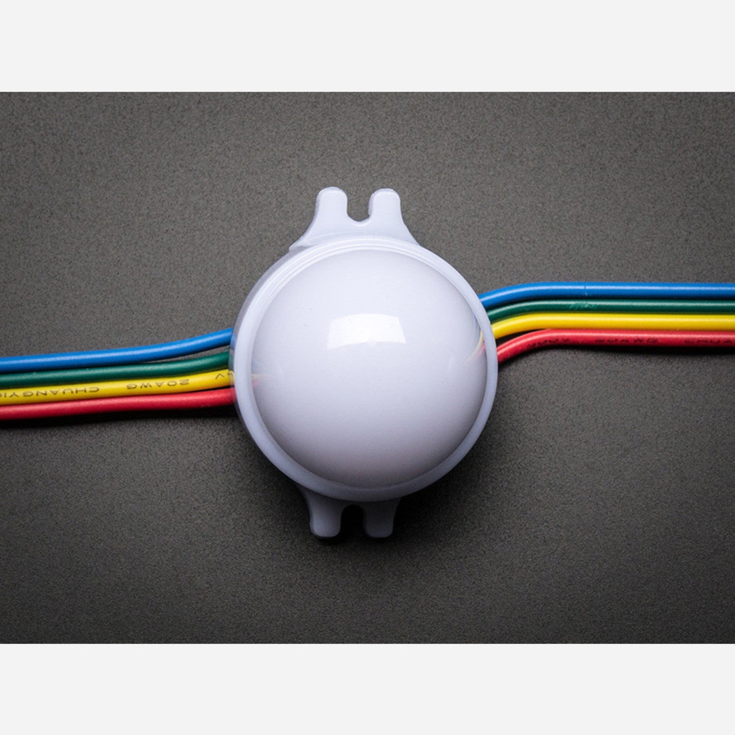 The pixels use 3 x 5050 RGB LEDs, and the dot has full 180 degree color spread due to to the translucent nature. All of the LEDs are controlled at once so you cannot have one pixel with the three LEDs different colors. (Color control is per single dot 3-LED pixel only) The total max brightness of all LEDs is about 4000mcd. (Please note: mcd ratings of LEDs are notoriously inflated by most LED sellers, so be extra-skeptical when reviewing LED ratings!)